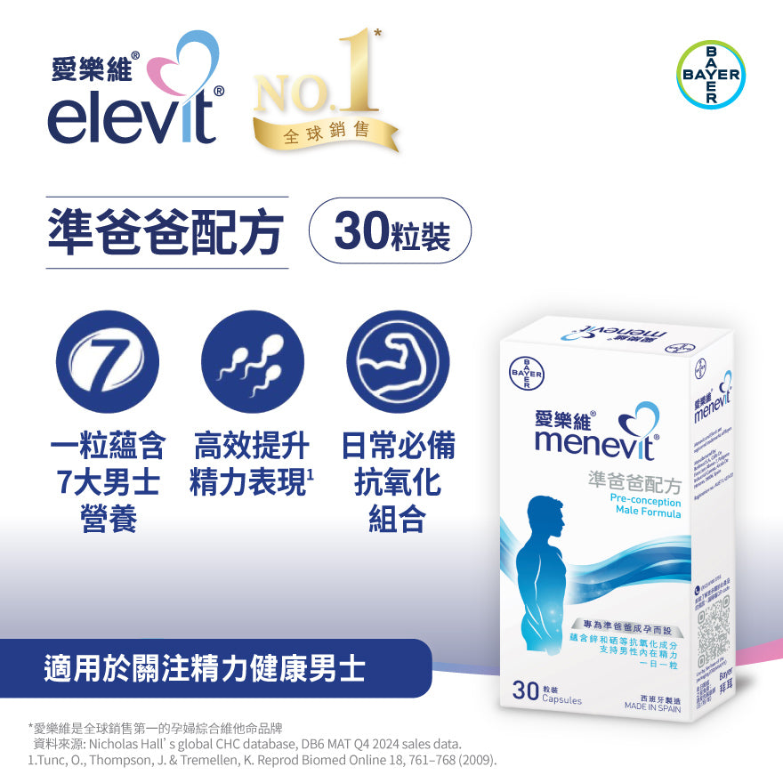 愛樂維®準爸爸配方 30粒裝 [香港原裝行貨] 特價! 從 HK$269.00 HK$296.00 /每 數量 添加到購物車 功效介紹• 專為準備成為爸爸的男士而設,含有七大獨特抗氧化組合,經臨床證實* 有效維持精子健康及質量,幫助滿足備孕中的男士營養所需,支持迎接健康新生命。• 維持精子健康及質量*,幫助滿足備孕中的男士營養所需,支持迎接健康新生命。• 最好在計畫受孕前至少90天開始服用• 每日隨餐服用一粒• 請勿放置於兒童容易接觸之地方。*Tunc, O., Thompson, J. & Tremellen, K. Reprod Biomed Online 18, 761–768 (2009).